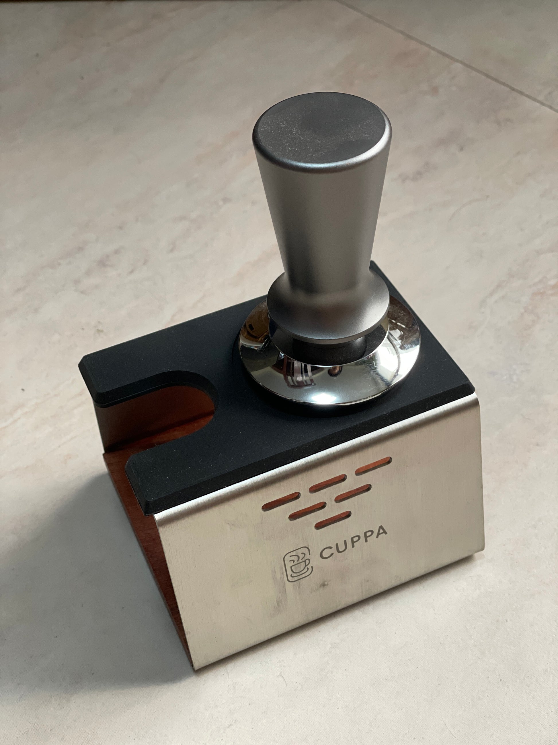 The Cuppa Calibrated Espresso Tamper is a specialized tool used to compress coffee grounds evenly and with the right amount of pressure to ensure a consistent extraction. It can be calibrated to increase or decrease the amount of pressure delivered to the espresso puck while tamping.