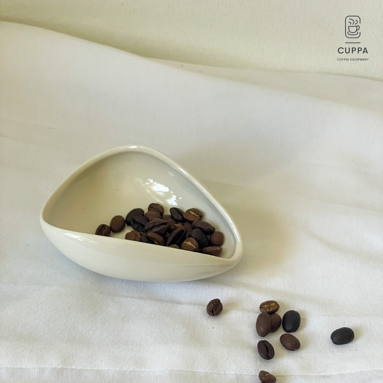 Cuppa Coffee Beans Ceramic Dosing Dish Tray 30g - White