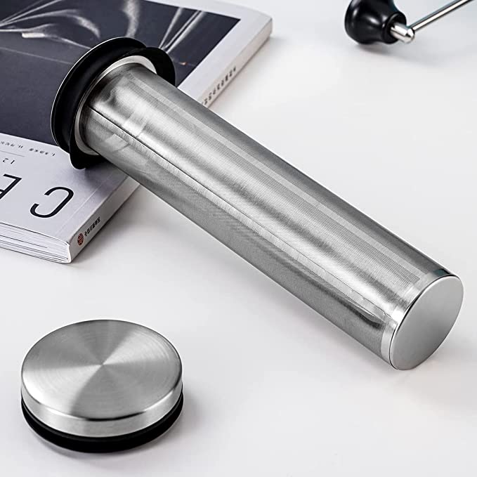 The coffee filter is made of stainless steel with fine mesh design, that's also removable and easy to clean. It can fit a large amount of coffee grounds, loose leaf or small tea bags and ensure that it is fully immersed and saturated. It is also equipped with an airtight lid with a silicone ring that can tightly seal the spout, making the coffee fresher for up to 2 weeks.
