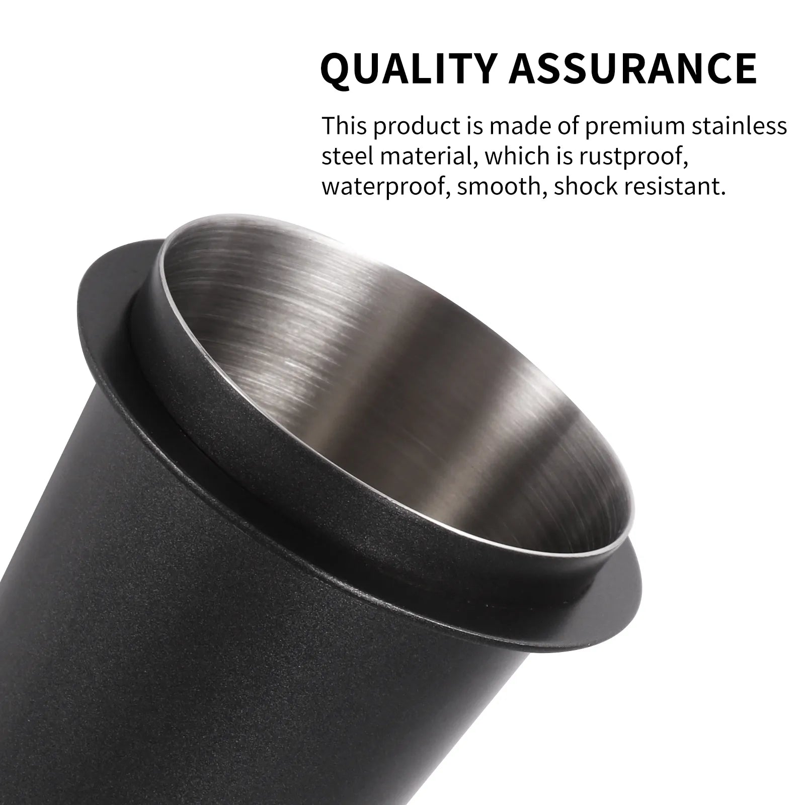 It is made with stainless steel, coated with a matte black finish to avoid slippage and blends aesthetically well with your coffee nook. The rim is uniquely designed to fit snugly into your Conical Burr Grinder.