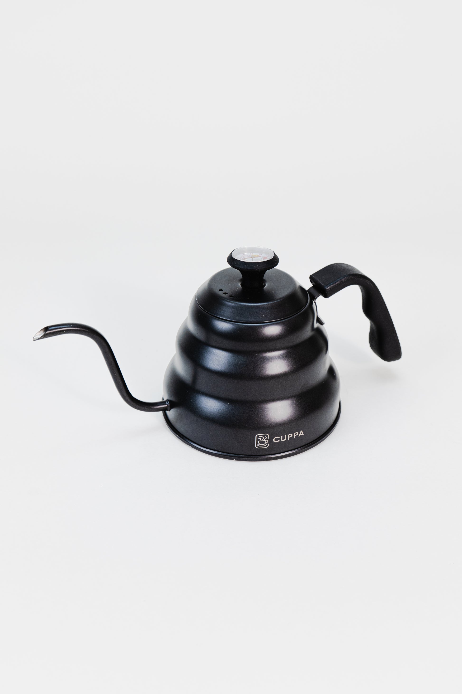 This Cuppa gooseneck cloud kettle is equipped with a built-in thermometer on the lid that allows you to check the temperature of the water. Its well-designed gooseneck nozzle can effectively control the flow speed, size and direction of water as you pour it with the ergonomically comfortable handle.